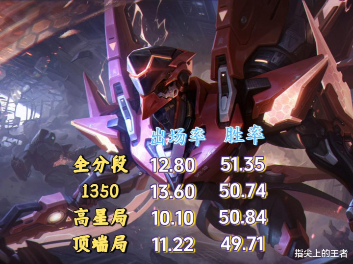 从最新的数据来看,铠还是很值得玩的,出场率各个分段都在10%以上,胜率也普遍在50%以上,所以只看数据,铠皇就已经超过了许多的英雄。