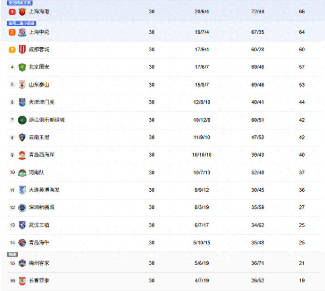 相比于中上游排名的相对稳定,中下游球队的排名变化不小。令人惊讶的是,两支升班马表现都不错。其中云南玉昆排名第八,大连英博在联赛中后期就已稳居中游,最终排到了第十一位。此外,去年的升班马青岛西海岸也排到了第九位,深圳新鹏城虽然一度为保级苦战,最终还是成功上岸。至于最终降级的球队,梅州客家队并不让人意外,毕竟他们是今年递补重返的中超,准备本身就不充分。倒是曾经的中超冠军长春亚泰队,谁也没想到他们会提前一轮降级。