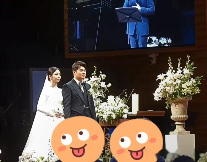 新娘虽然是素人,但长得还挺漂亮的,反而作为星二代的车正民,长相一般,完全没遗传到爸妈的好基因,他们两人站在台上,听主持人发言,台下的车仁表和申爱罗一脸欣慰的看着儿子。