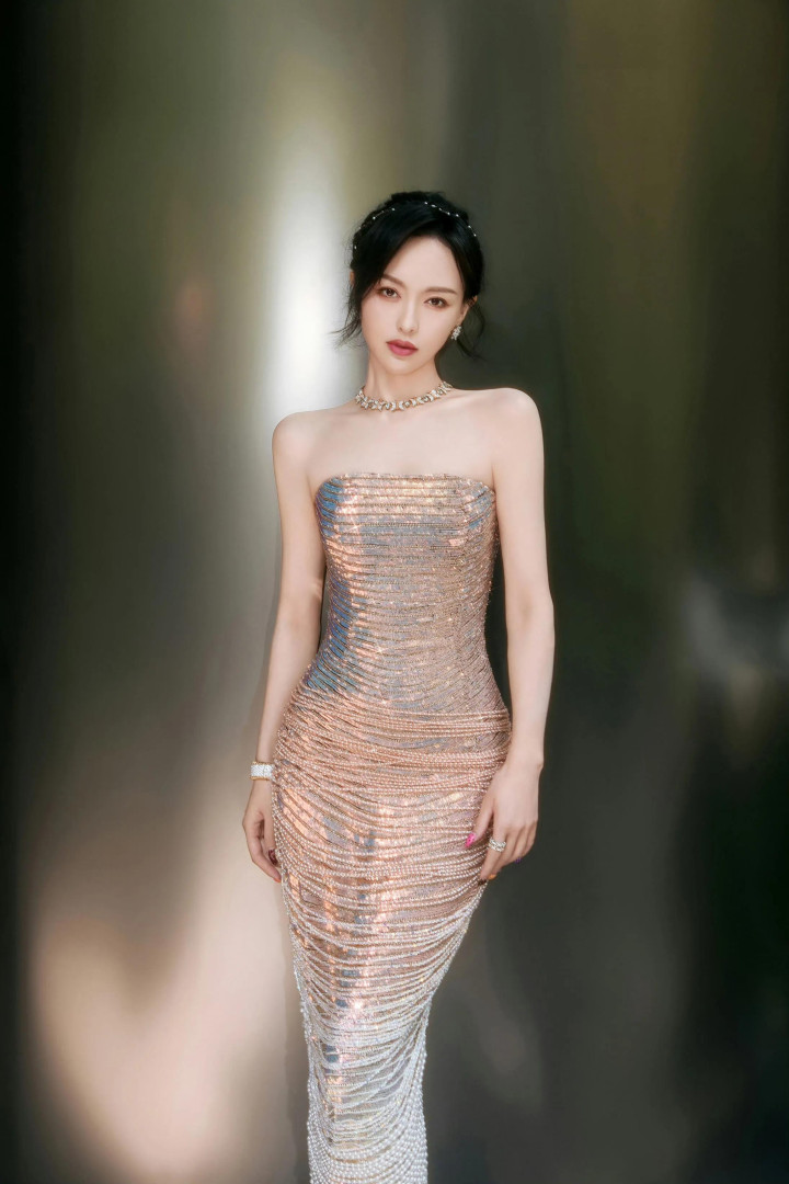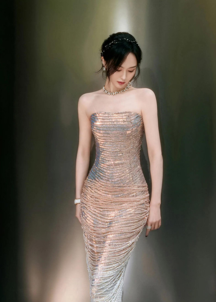 唐嫣性感抹胸礼服