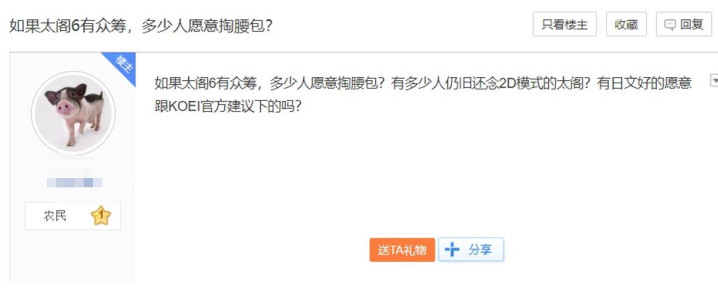 所以光荣要是看到咱们这股劲儿,赶紧把众筹链接放出来吧。老玩家们的钱包已经备好,热情也已点燃,只等一声令下,咱们这群老玩家,能把《太阁6》的众筹目标,给你顶到“天下布武”的级别!